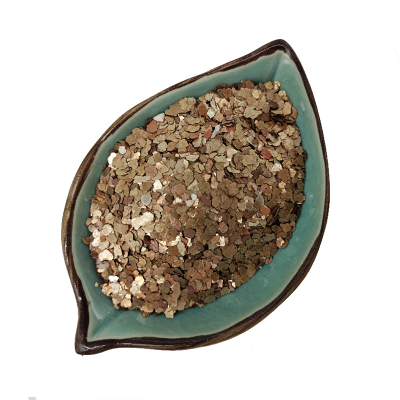 煅燒云母,又稱脫水云母,是用恒溫煅燒技術(shù)使云母晶體中的部分結(jié)晶水脫出。各種顏色的自然云母都可以進(jìn)行脫水處理,同時(shí)其物理與化學(xué)性能都發(fā)生很大的改變。最直觀的變化就是顏色的改變,比如自然白色云母煅燒后會(huì)呈現(xiàn)以黃色和紅色為主色的色系,自然黑云母焙燒后一般會(huì)呈現(xiàn)出金黃的顏色。